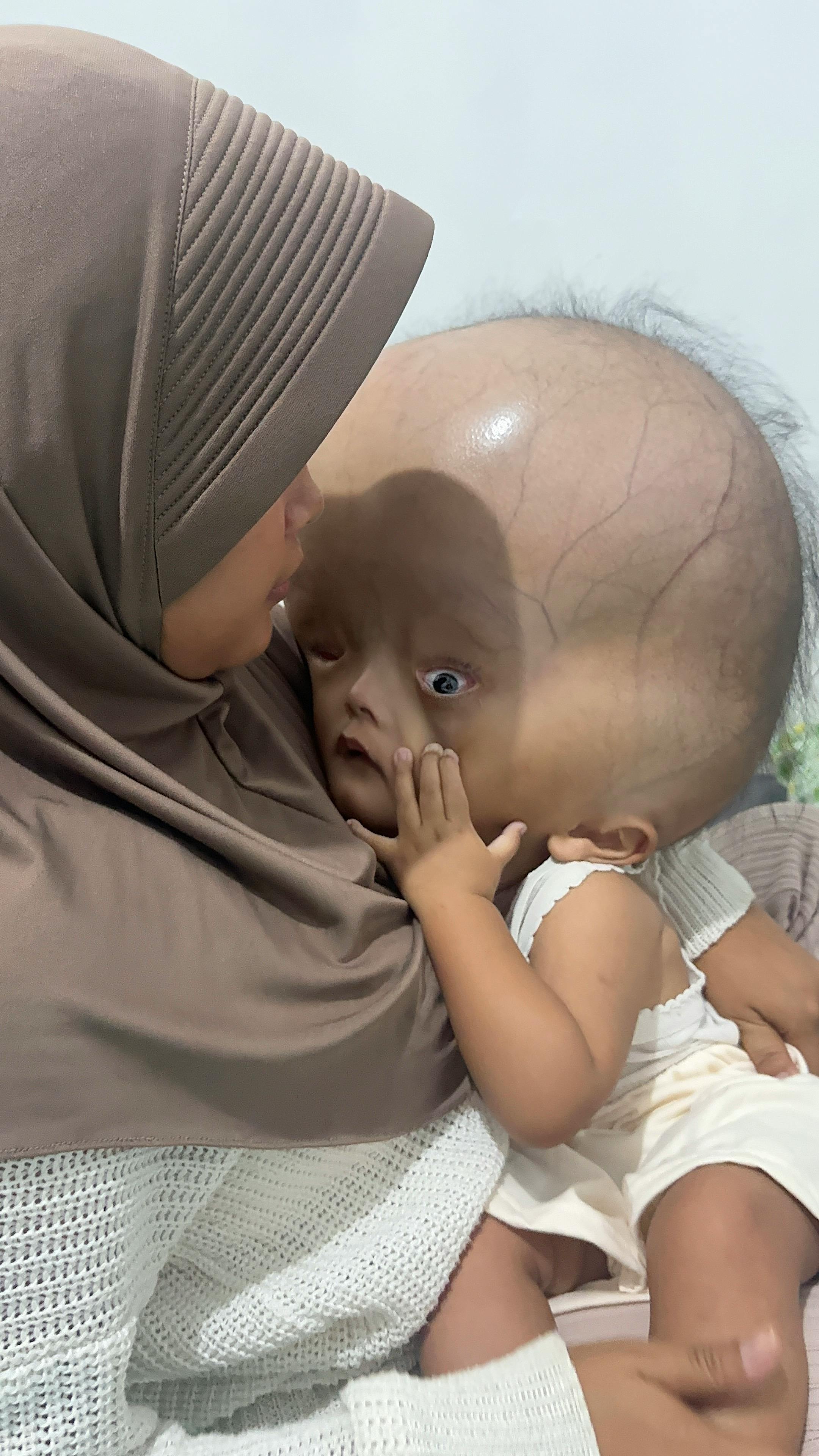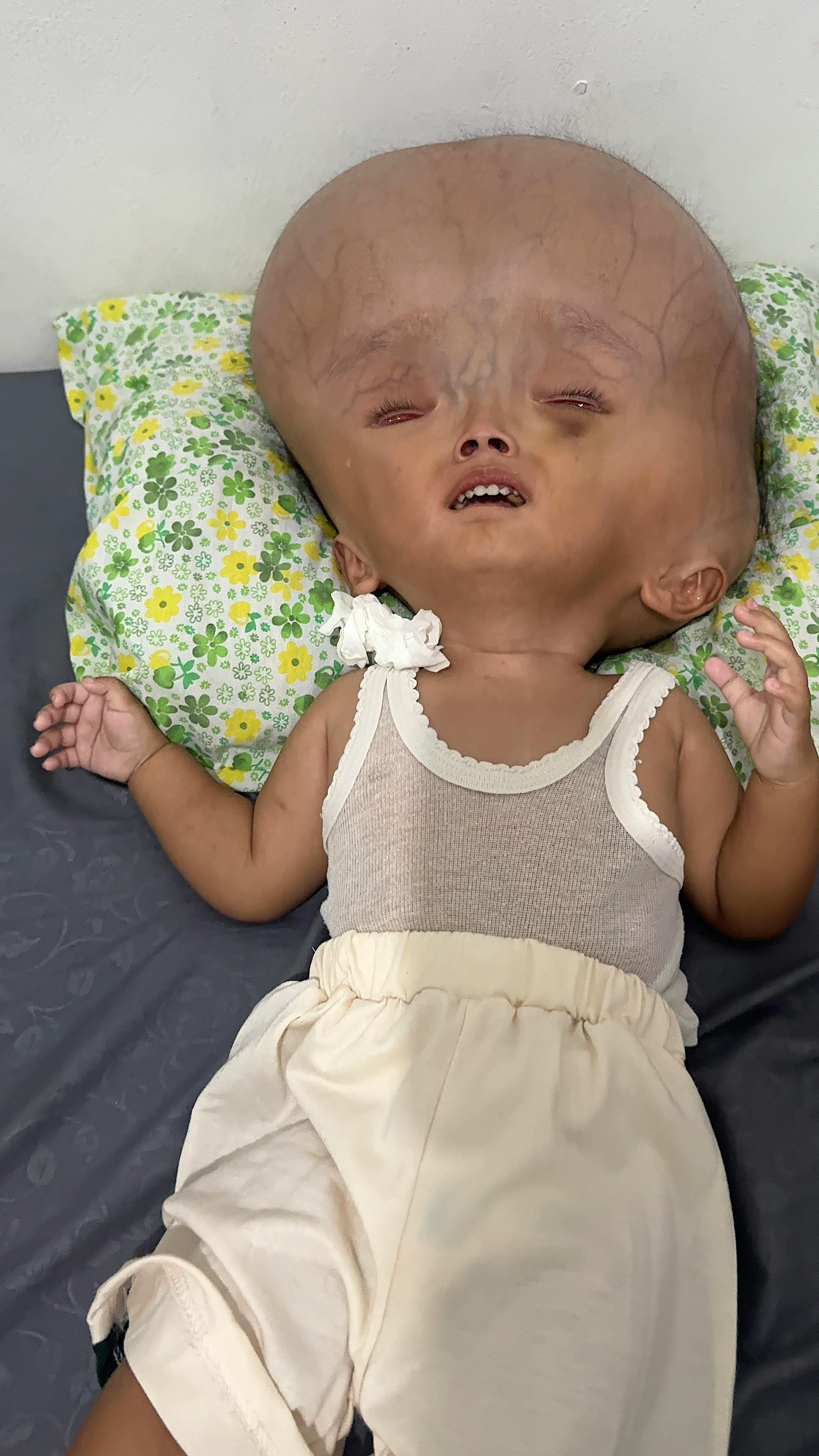 Kini, di usia sekitar satu setengah tahun, kondisi Nugraha semakin memprihatinkan. Kepala terus membesar, sementara tubuhnya semakin lemah. Tangisannya hampir tidak pernah reda, menandakan tekanan dan rasa nyeri yang terus ia alami setiap hari.